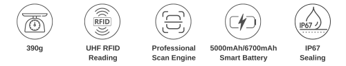 The DT610 pairs with the RFG91 RFID sled to extend reading distance ๏ผ15m, it delivers a faster RFID reading rate of 1300+ tags per second.